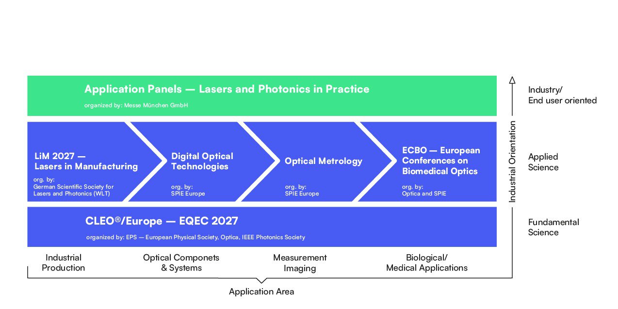 Alle zwei Jahre trifft sich die internationale Wissenschaftselite in München um auf Europas größtem Photonik Kongress sich über Leuchtturmprojekte der Photonik- und Laserforschung zu informieren. In fünf wissenschaftlichen Konferenzen und einer praxisorientierten Reihe von Anwendungspanels werden alle Aspekte der Forschung – von grundlagen- und anwendungsorientierten wissenschaftlichen Themen bis hin zu den neuesten Laser- und Photonik-Anwendungen in Industrie und Medizin- vorgestellt und diskutiert. Rund 3.000 Präsentationen, Invited Talks, Kenynotes, Poster-Sessions und Plenarvorträge bieten den Forschenden aus aller Welt ein gigantisches Fenster in die Zukunft.